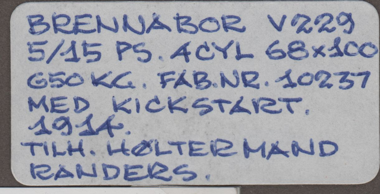 | Beskrivelse: | 5/15 PS, 4 cyl, 68x100, 650kg, fabrikationsnr. 10237, med kickstart