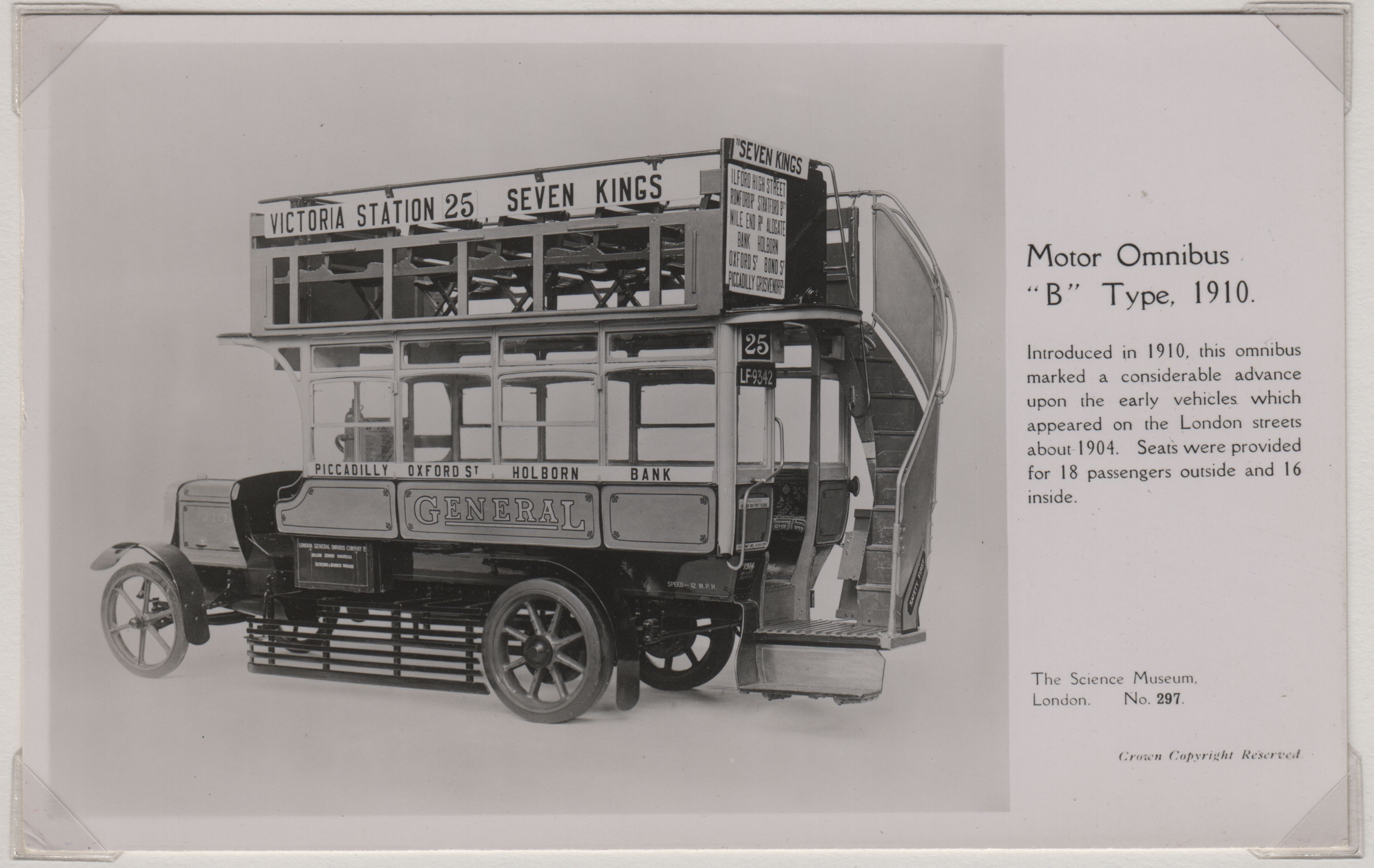 | Beskrivelse: | Gurney's Steam Coach (1827), Hancock's Steam Omnibus (1933), hestetrukne spovogne ved Marble Arch (1861), Motorvogne ved Ludgate Circus, Motor Omnibus "B" (1910) |