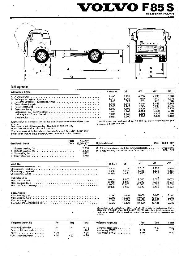 | Beskrivelse: | Div. teknisk informations ark for Volvo Lastbiler solgt fra Ole Sommer