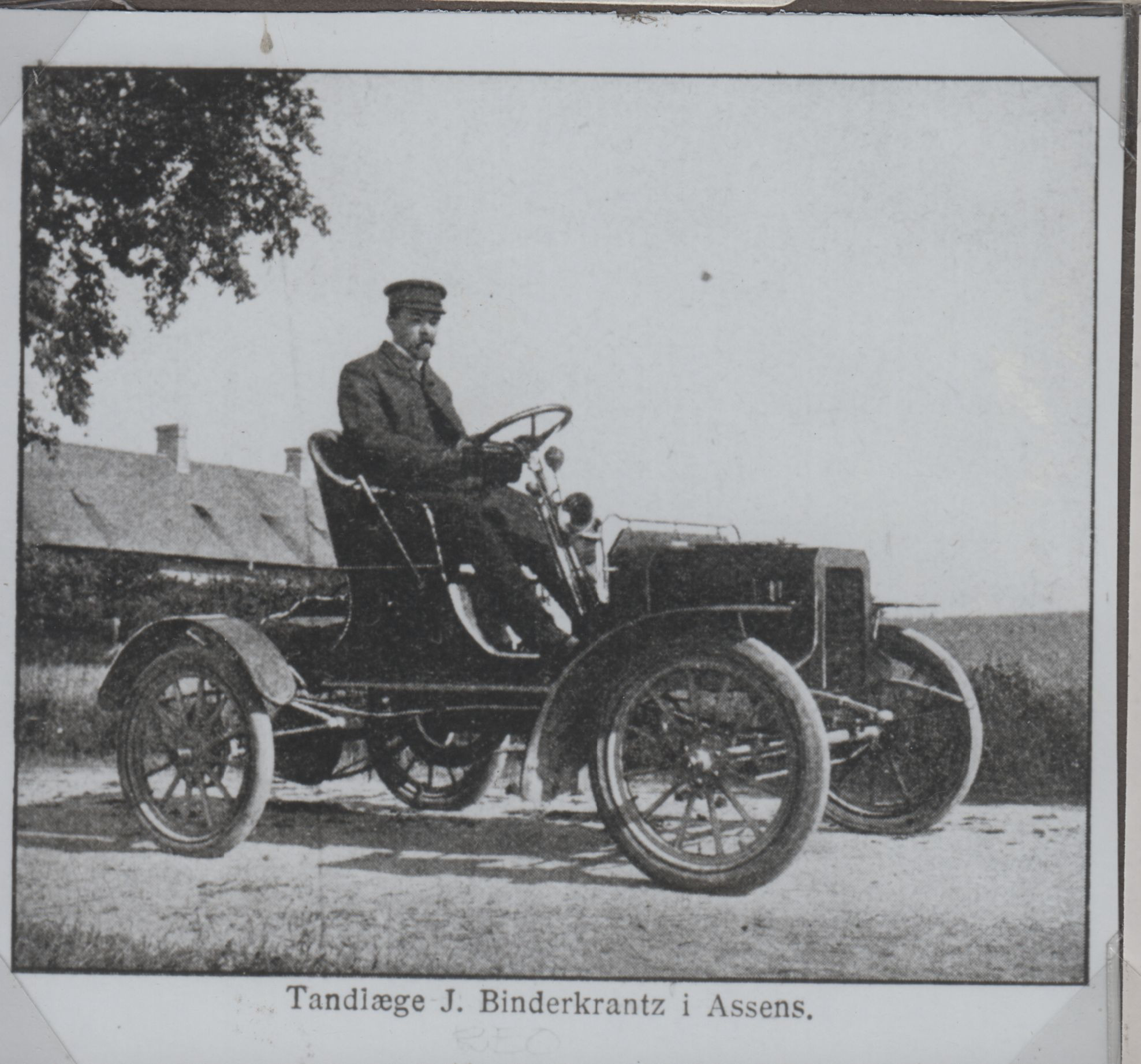 | Beskrivelse: | Tandlæge J. Binderkrantz på sin REO |